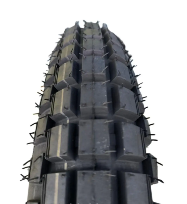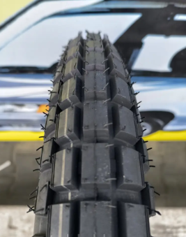 Резинові шипи на поверхні шини гарантують відмінний тяговий опір на різноманітних дорожніх покриттях, включаючи сніг, лід та мокрий асфальт. Це робить її ідеальним вибором для мотоциклів, які експлуатуються в умовах, де погодні умови можуть бути великим викликом.
