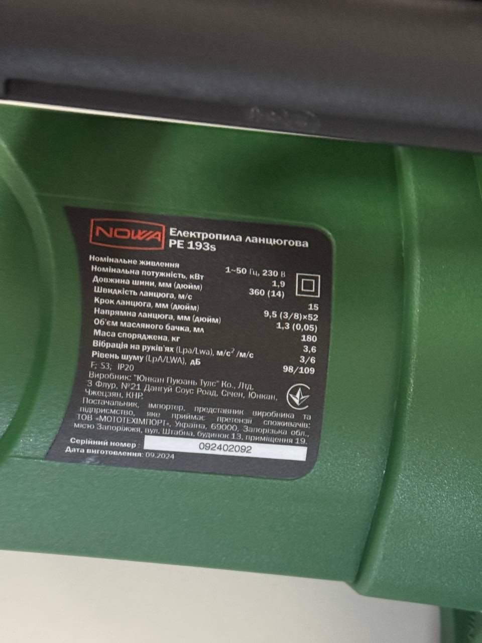 Пила електрична NOWA PE 193S ланцюгова Відгуки