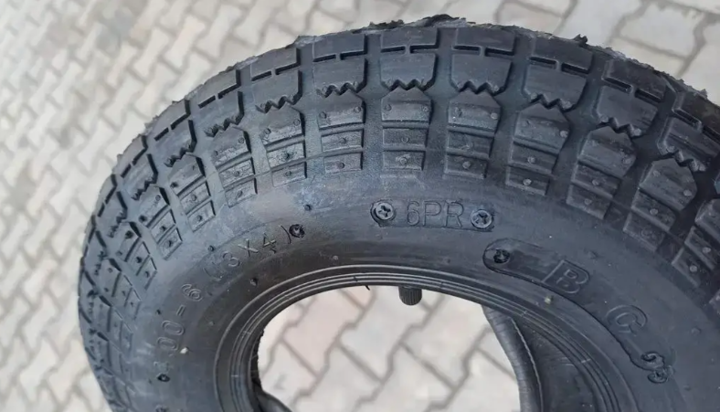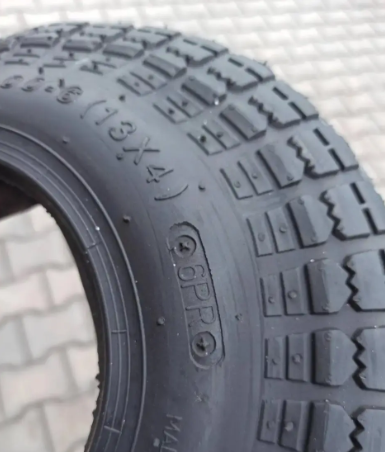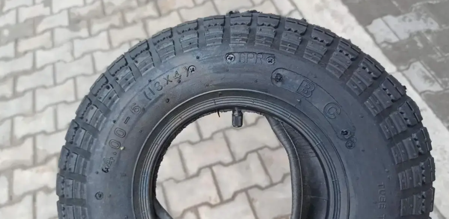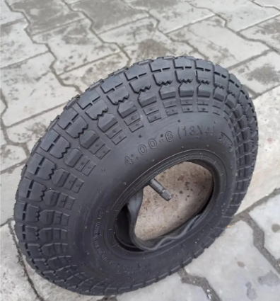 Покришка 4.00-6 ВС 6PR, на садову тачку, вантажопідйомністю 100 кг, не сохне на сонці, так як зроблена з додавання каучуку, а не сажі або вторинної сировини.