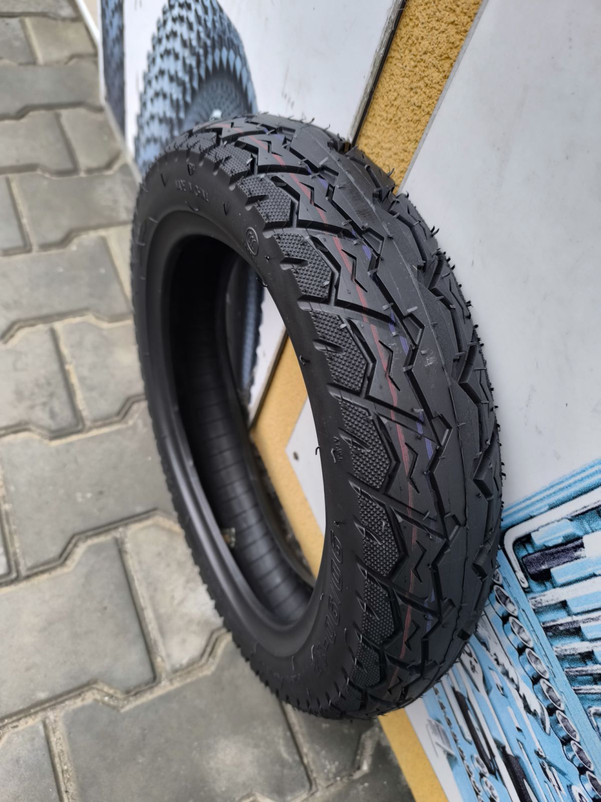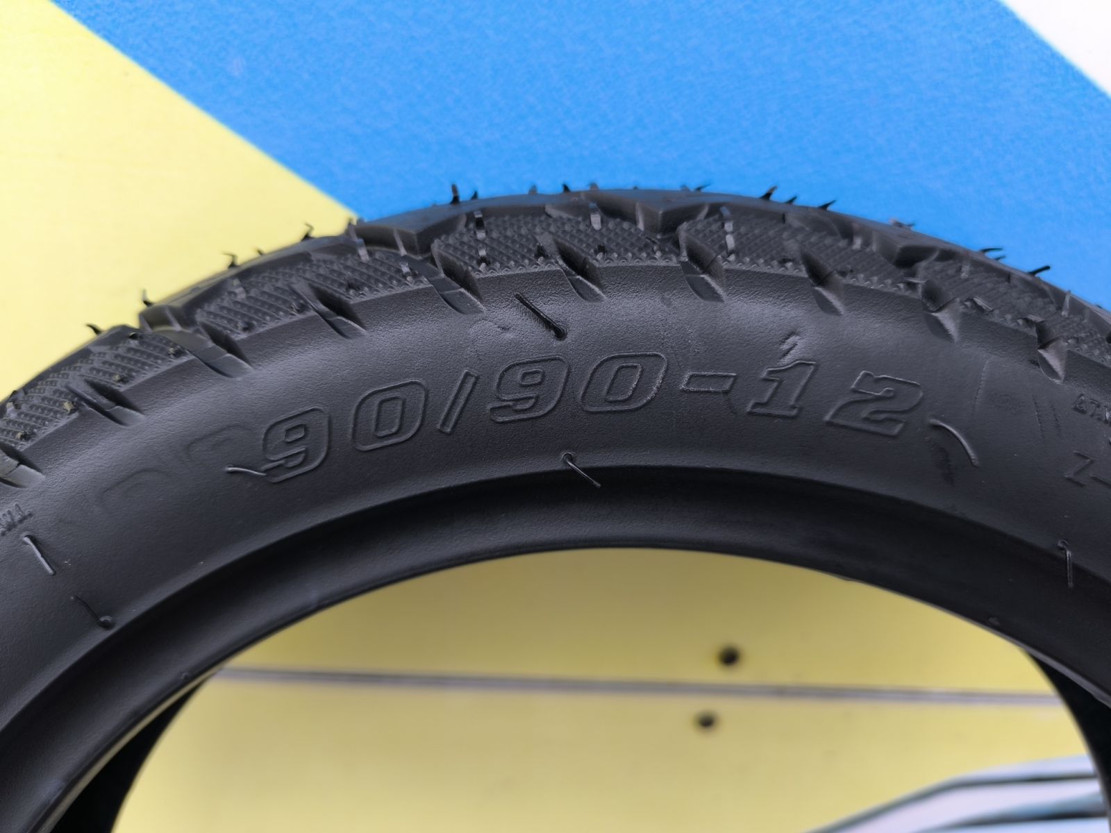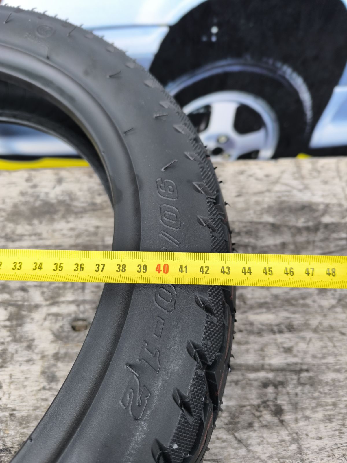- Розмір: 90/90-12 (ширина 9 см, висота профілю 8.1 см).